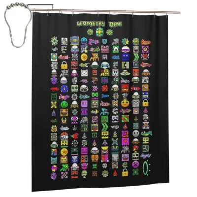 Explore our range of Geometry Dash shower curtains in the United Kingdom designed for fans who want to upgrade their bathroom with bold and colorful designs. These shower curtains combine durability, water resistance, and iconic game-inspired visuals.